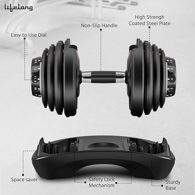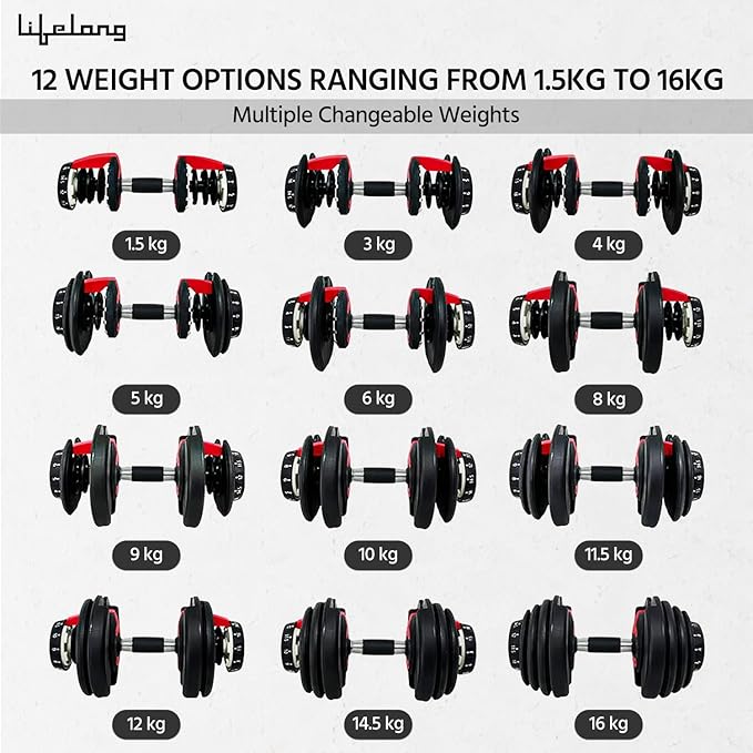 Durable Design: These pairs of adjustable dumbbells are crafted from iron; and compared to traditional dumbbells, the Lifelong adjustable dumbbells help us to perform a wide range of exercises.