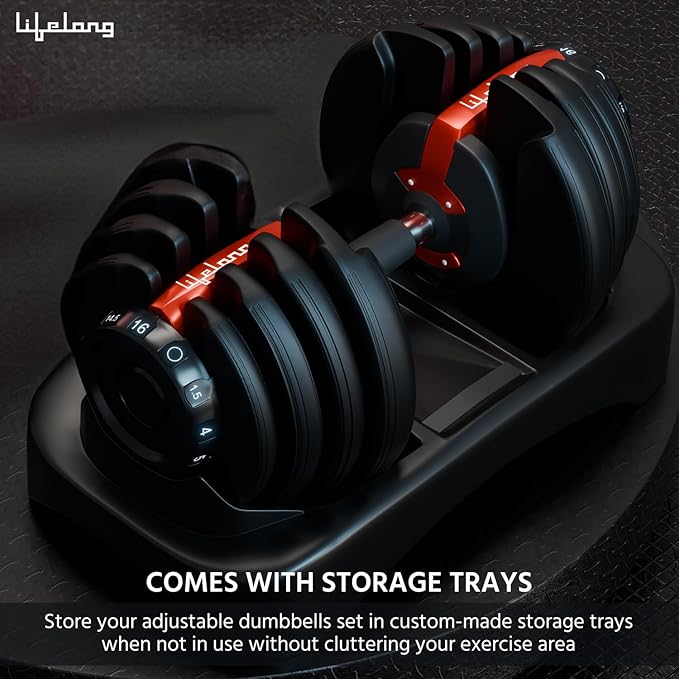Comes with Storage Trays: Store your adjustable dumbbells set in custom-made storage trays when not in use without cluttering your exercise area.